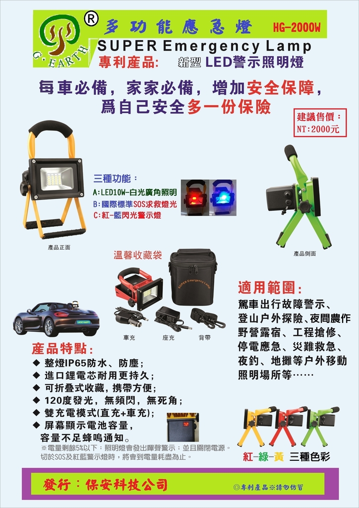 露營,夜間農作,工程搶修,災難救急,